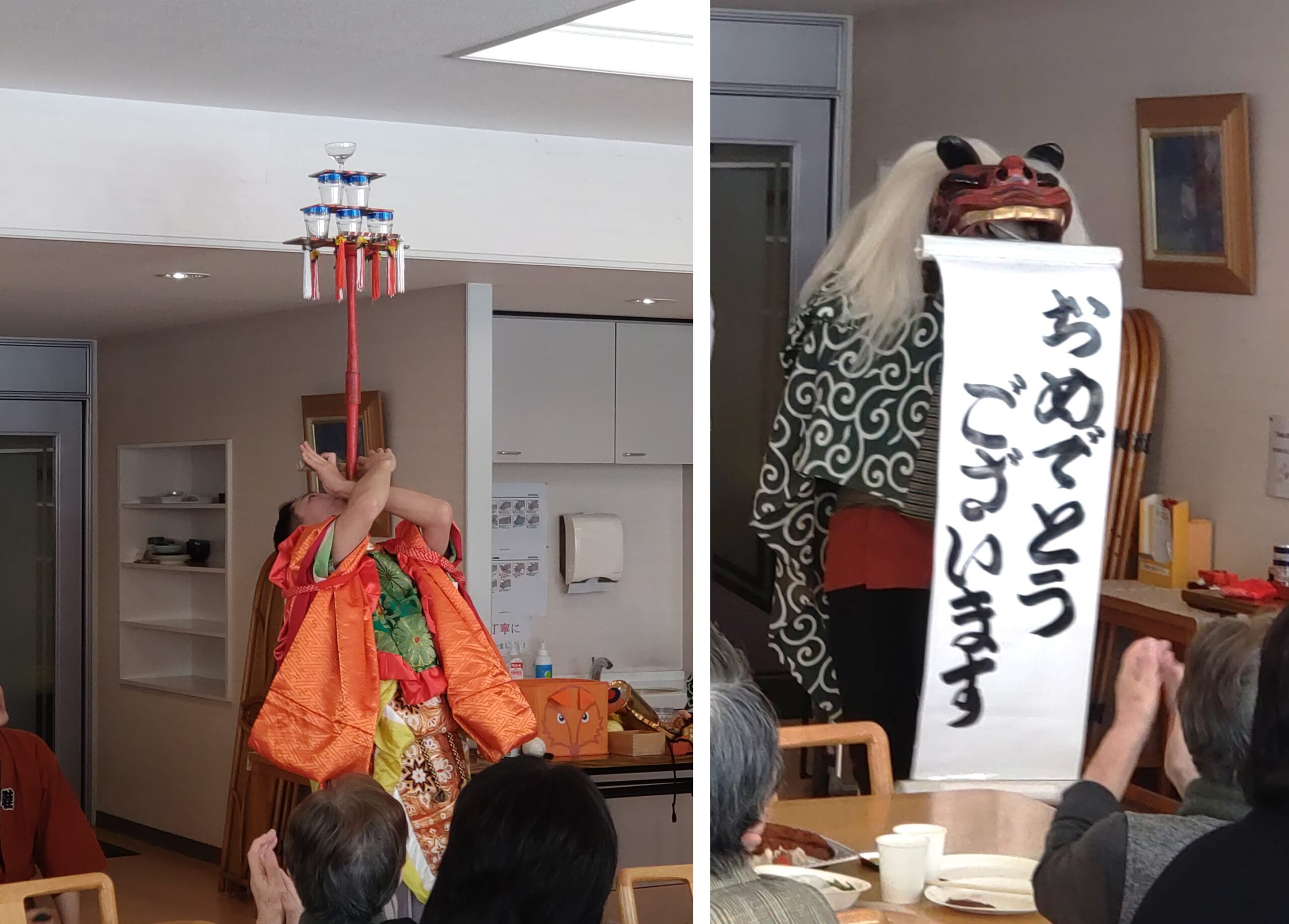 新年会の華やかさをさらに引き立てるために、獅子舞が皆様の席を練り歩いたり、太神楽も披露もあり、会場は笑顔に包まれた和やかな雰囲気に満ちました。