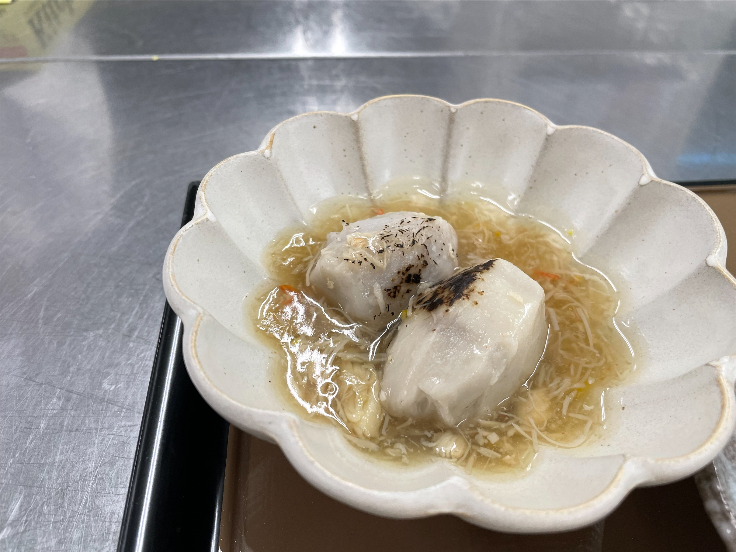 肉質の細かい京野菜の海老芋を柔らかめに昆布だしで煮て、表面を炙りぬるつきを抑えています。
