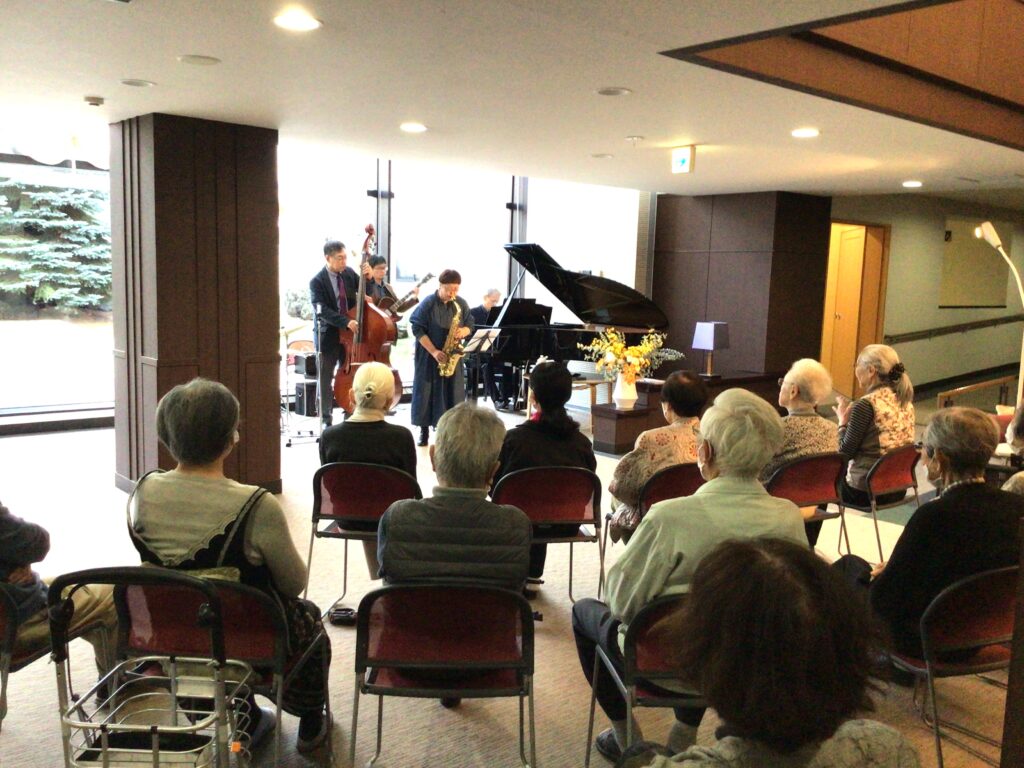 ジャズの温かな音色にご入居者様がうっとりと耳を傾け、