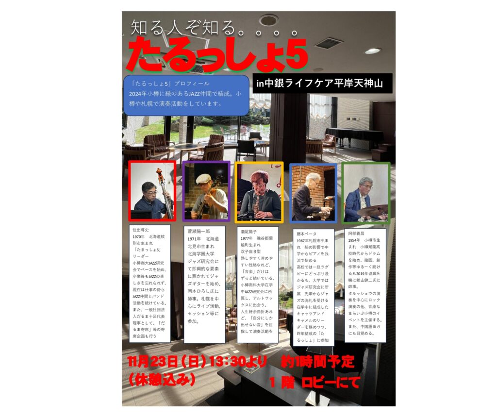 ジャズグループ「たるっしょ5」によるコンサートを開催いたしました。