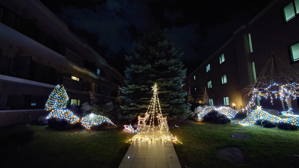 12月1日(月)、数年ぶりに中銀ライフケア札幌 平岸天神山の中庭に、イルミネーションの装飾を行いました。