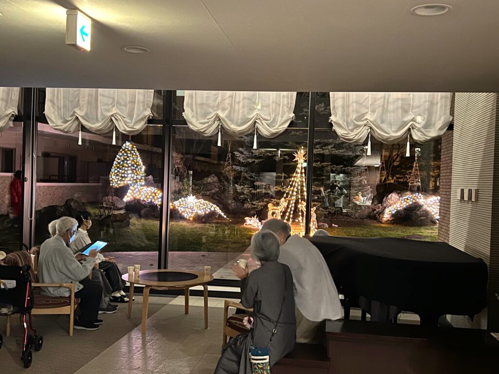 窓越しに広がる幻想的な景色に、自然と笑顔がこぼれ、「きれいね」「素敵ね」といった声があちこちから聞こえてきました。心まで温かくなる、そんなひとときとなりました。