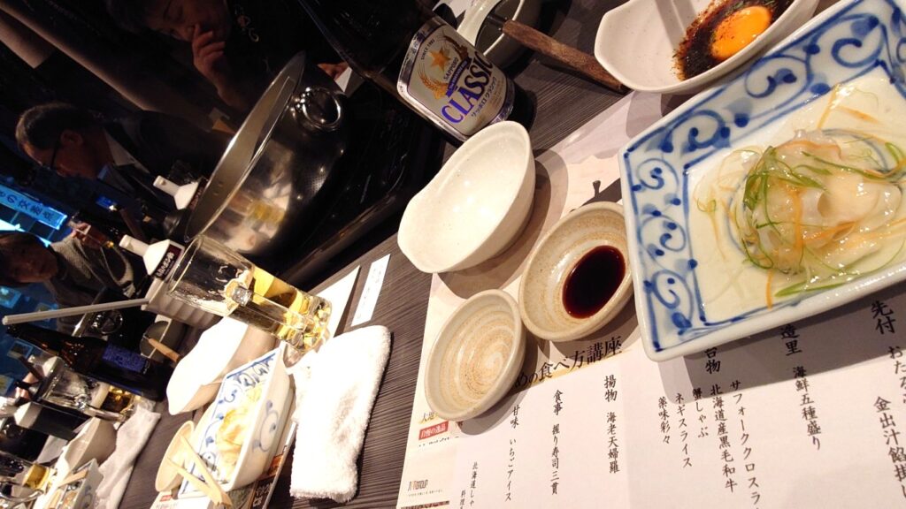その後は「北海しゃぶしゃぶ大地」に移動し、楽しみにしていたコース料理を堪能。
