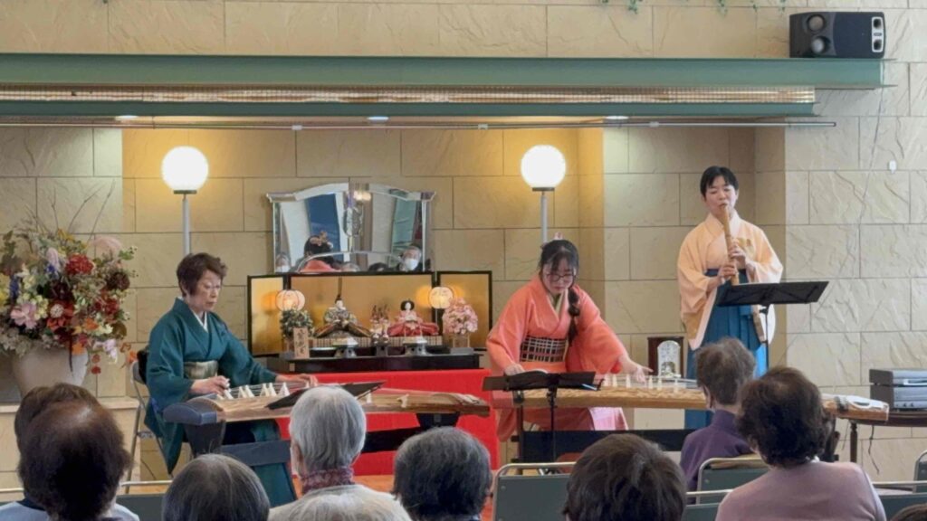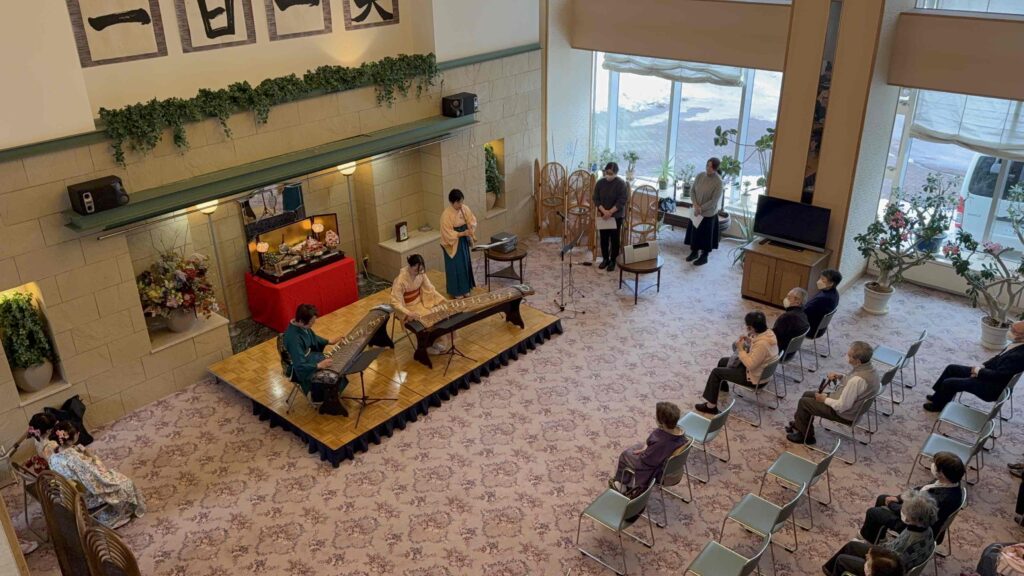 ロビーに響き渡るお箏の繊細な音色は、